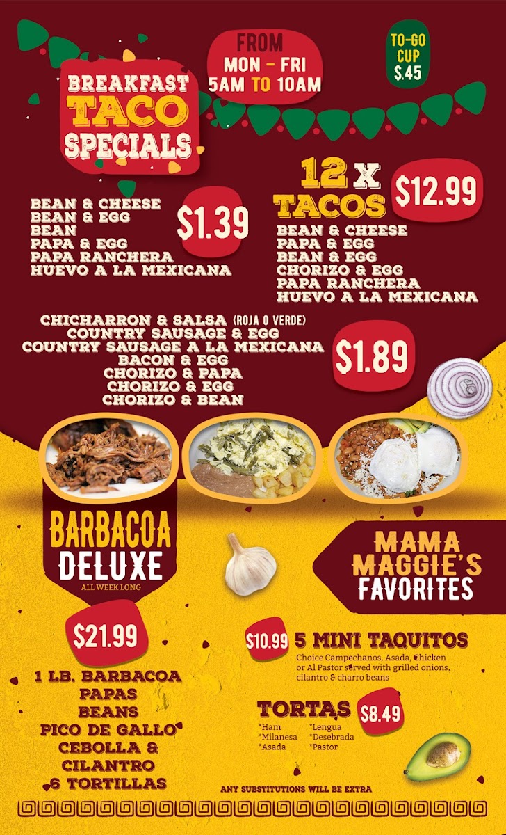 Mama Maggie's Mexican Restaurant & Bakery Menu